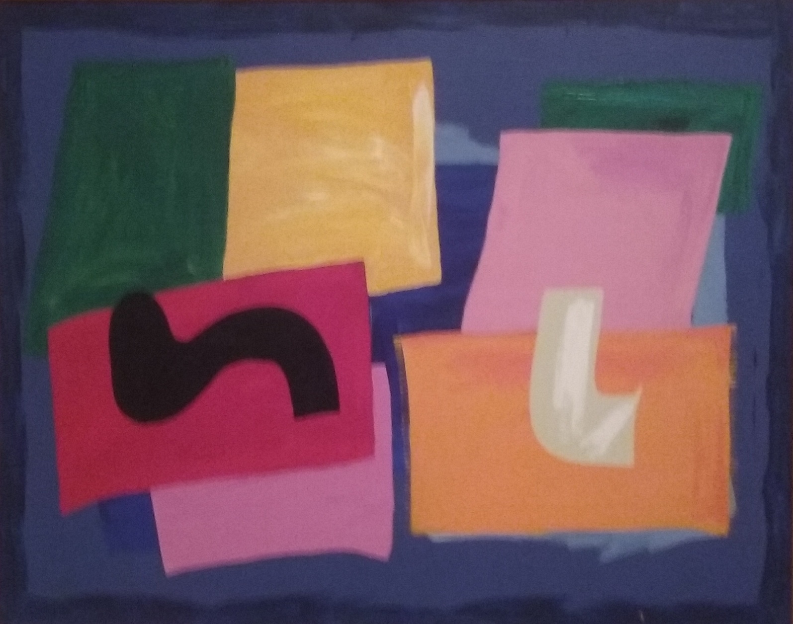 Think of Carpet as a statement of life and appreciate how the blocks are not symmetrical nor posed symmetrically on the canvas upon which the letters appear to dance, and you get the idea of a buzzing dance floor capturing thus the vibrant energy of African culture. Another way to look at it would be to see the canvas as shorthand representation of our DNA code. Homo sapiens, emerged from Africa, as we all know, and these are the genes represented on the canvas, the genes too of all the wonderful creativity that has spread throughout the world.
